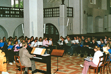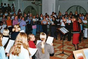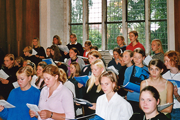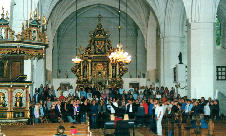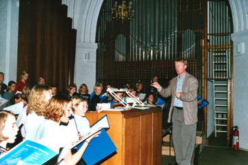 til et stort kor ved orglet |