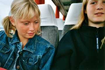 række i bussen. Maria og Anne. |