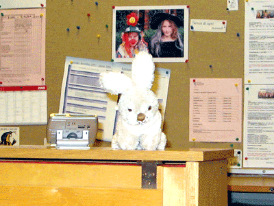 et glasskab i receptionen en hel masse små søde tøjkaniner og ventede på at