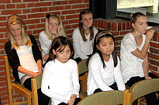 6 sangere fra børnekoret sammen med pigekoret.