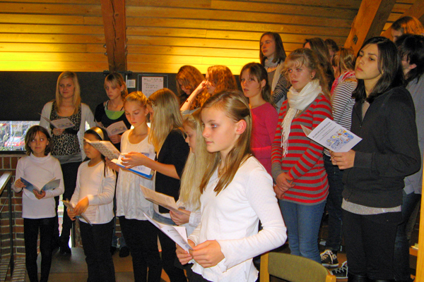 Børnekoret står forrest