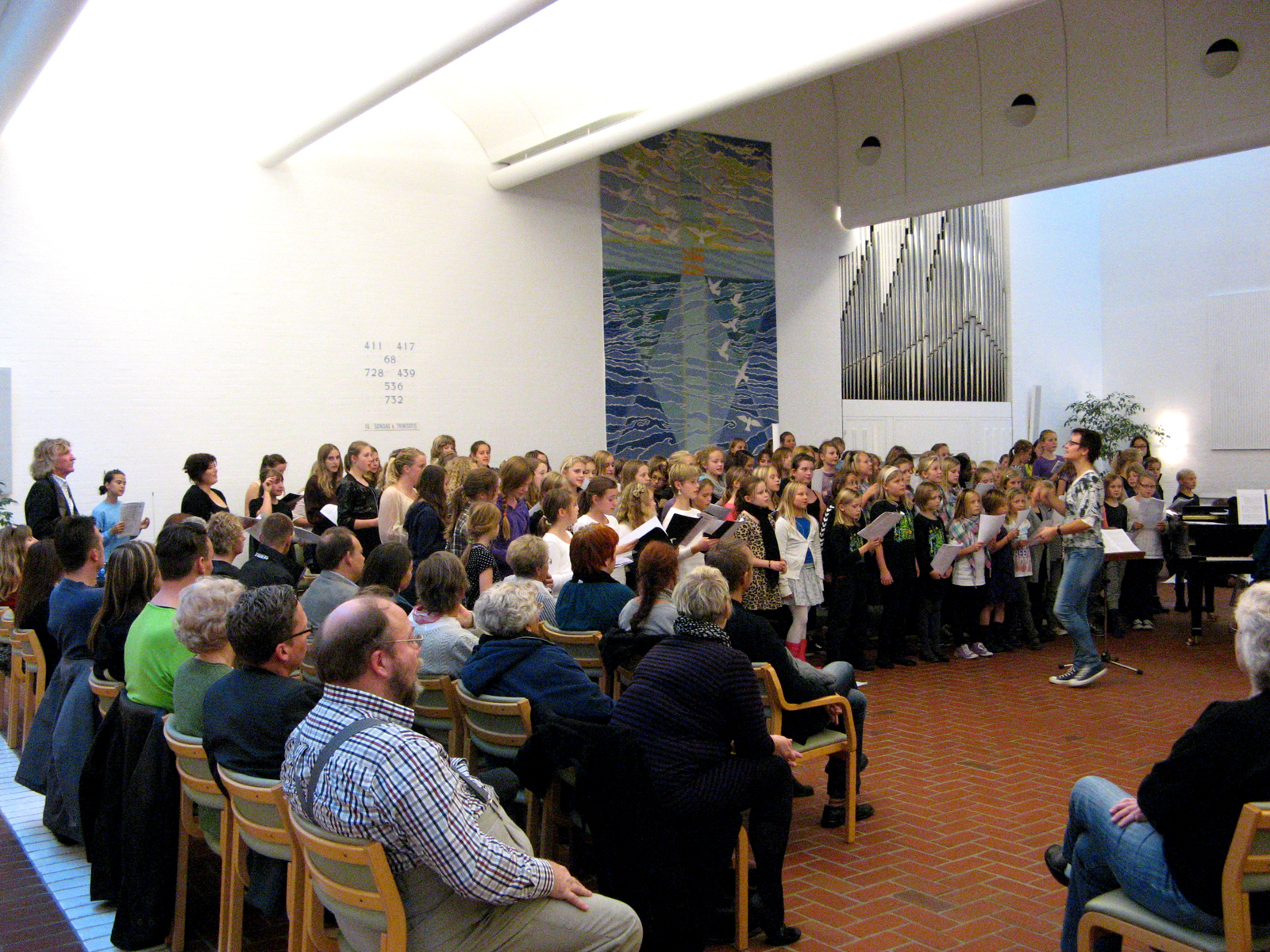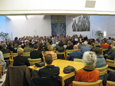 Kirken var overfyldt ved koncerten. Man måtte åbne væggen til et sidelokale. |