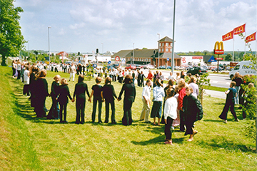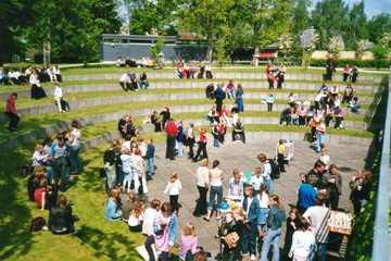 Frokostpause udenfor. Vi valgte amfiteatret i kirkens have. |