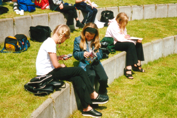 Det er vejr til en sangleg på græsplænen i pausen. |