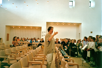 Bente begynder prøven med gruppe 1 inde i kirken. |